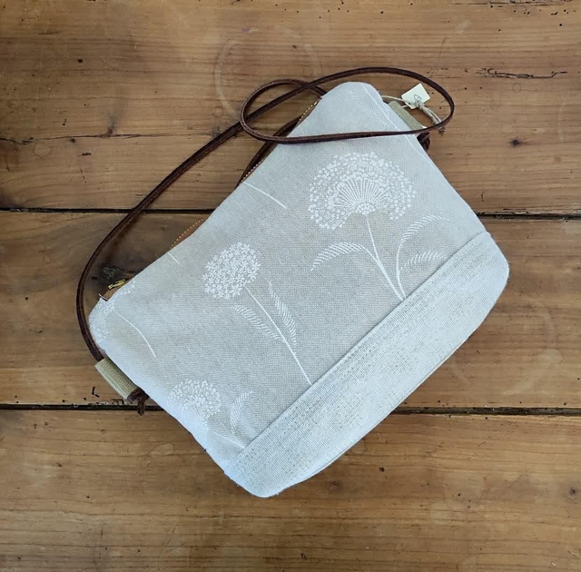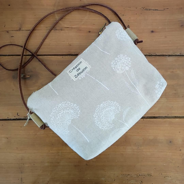 Tissu coloris lin fleurs blanches