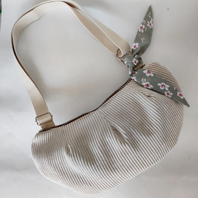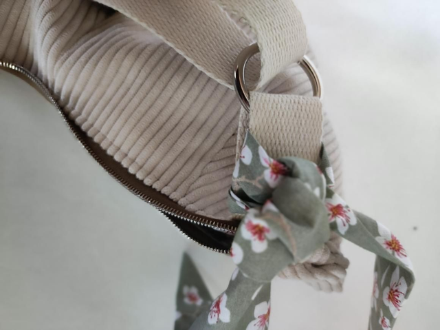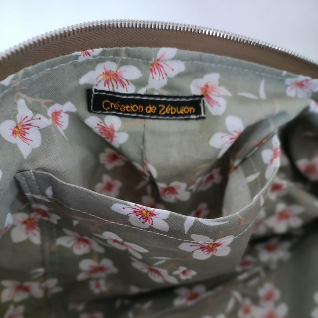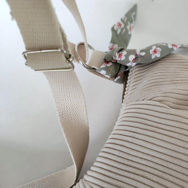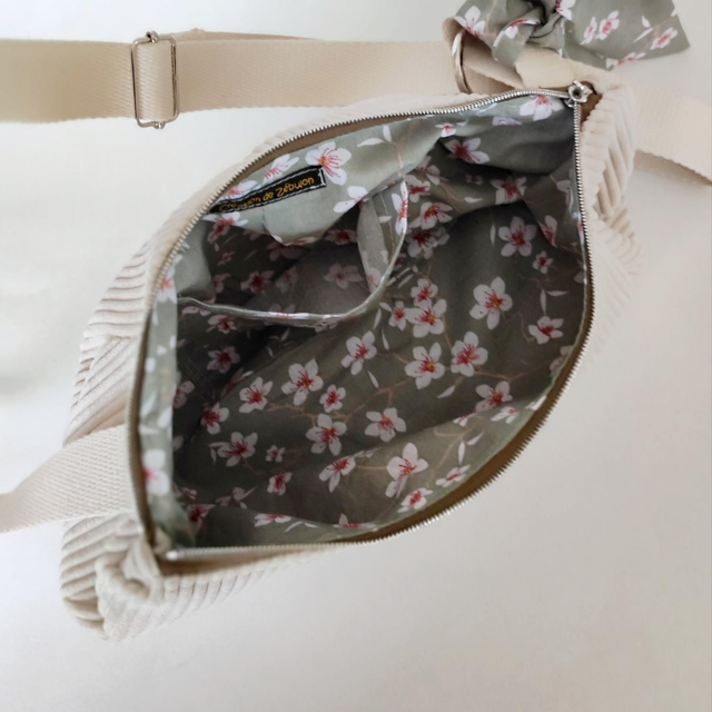 Velours petites côtes écru , intérieur pastel gris fleurs de cerisier japonais